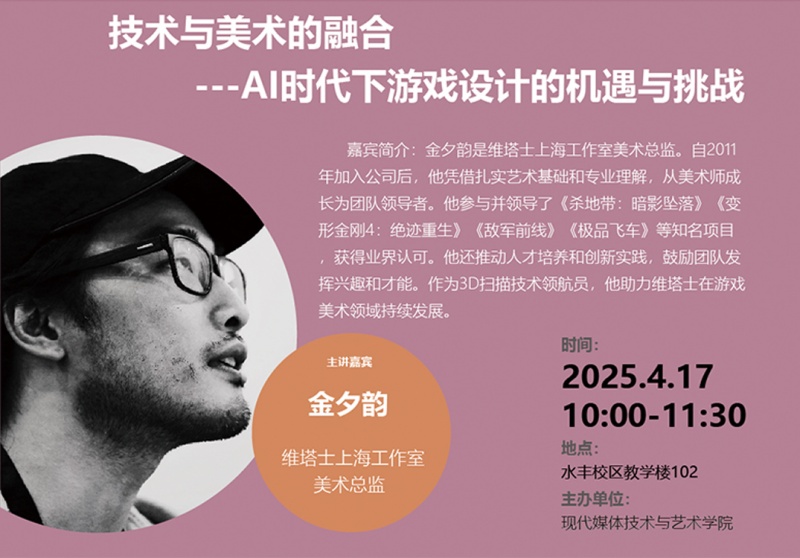 嘉宾简介:金夕韵,维塔士上海工作室美术总监。自2011年加入公司后,他凭借扎实艺术基础和专业理解,从美术师成长为团队领导者。他参与并领导了《杀地带:暗影坠落》《变形金刚4:绝迹重生》《敌军前线》《极品飞车》等知名项目,获得业界认可。他还推动人才培养和创新实践,鼓励团队发挥兴趣和才能。作为3d扫描技术领航员助力维塔士在游戏美术领域持续发展。