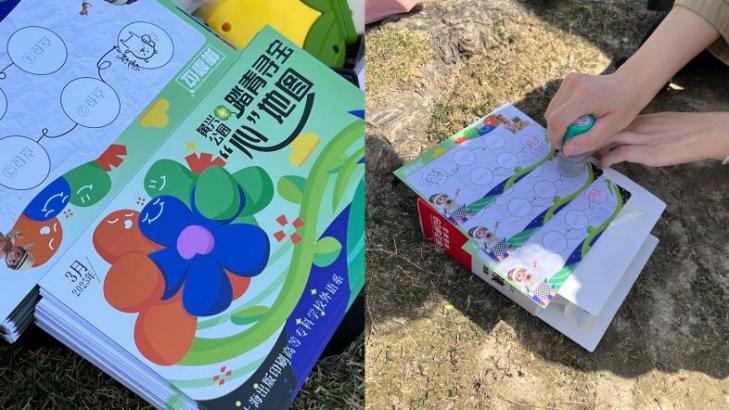 活动前期,外语系对场地进行了细致的规划,在黄兴公园内设置了6个风格各异的寻宝点位,并安排了相应的志愿者在每个点位值守打卡,参与同学需要在领取集章卡片后,在规定时间内分别前往这6个寻宝点并完成相应的任务。
