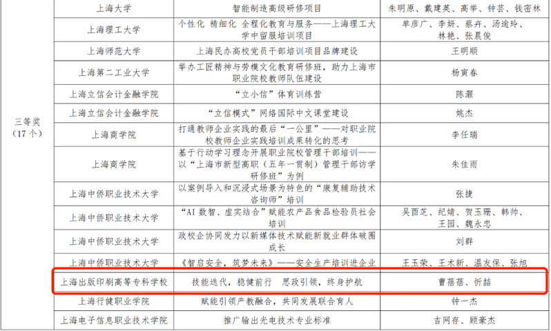 2024年度上海出版印刷高等专科学校非学历教育项目公示